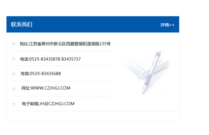傳真:0519-83435688    郵編:213135    網址:WWW.czjhgj_com.js-sunson.com    電子郵箱:JH@czjhgj_com.js-sunson.com